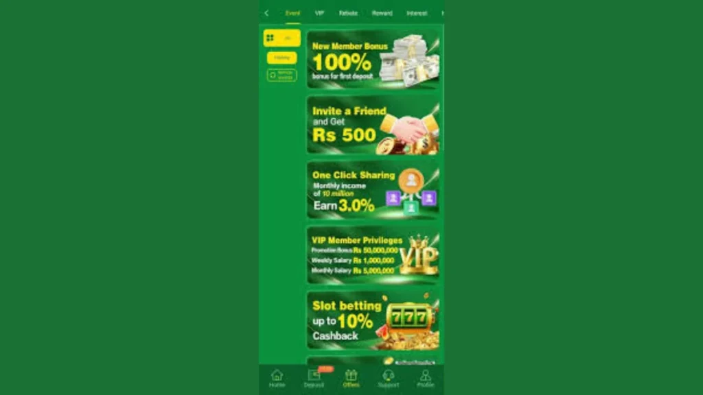 - Recharge bonus based on deposit amount.